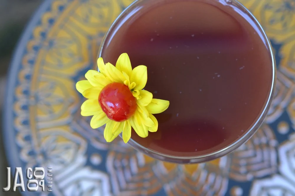 In a mixing glass add the cherry marmalade, pineapple, lemons and simple syrup and gently muddle. Next add the spirits and a scoop of ice and shake for five fast seconds. Now double strain into a chilled martini glass.